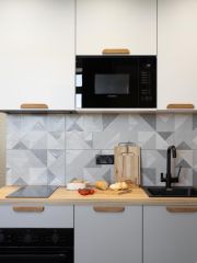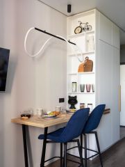 Квартира находится в 25 минутах езды от центра города. Рядом с домом есть все коммуникации: торговые центры, рестораны, кафе, парк, фитнес зал, бары.