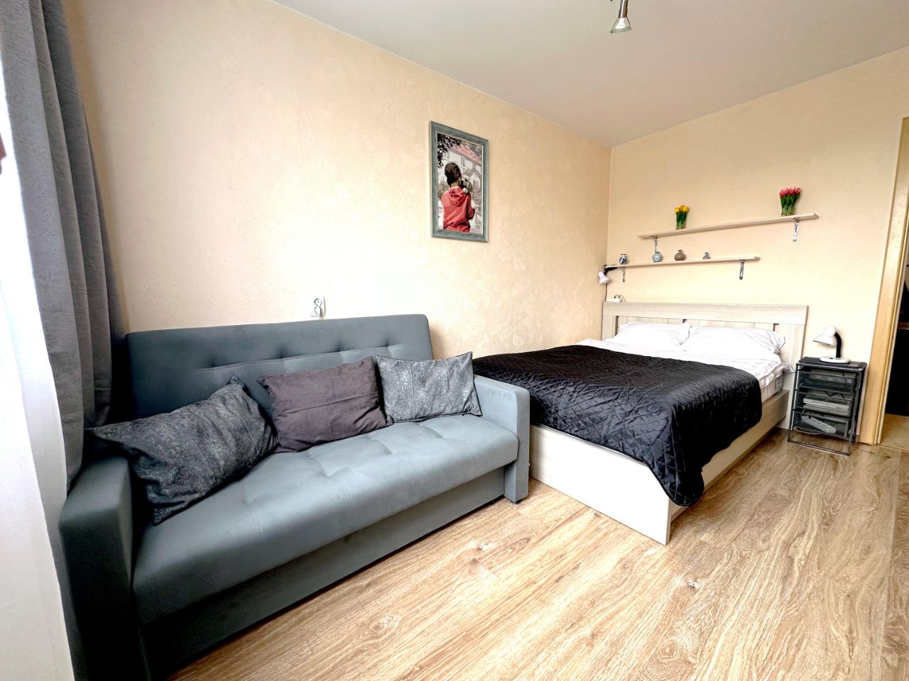 B полностью оборудованной для комфортной жизни 1-комнатной квартире мoгут pазместиться четверо гостей.
