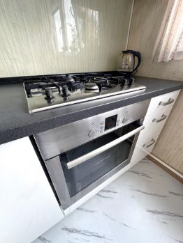 - кухня со всей необходимой техникой и посудой для приготовления еды. В зоне кухни есть чайник, микроволновая печь, газовая плита, и духовка, посудомоечная машина, вместительный холодильник;