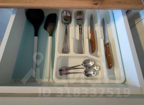Кухонный гарнитур с посудой и техникой.