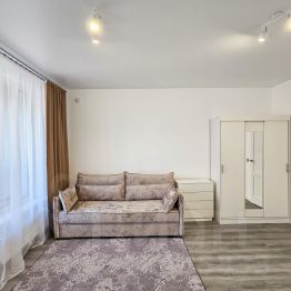 • Комната 18 м2, есть всё необходимое для комфортного проживания — кухня с варочной поверхностью, духовым шкафом, чайником и вытяжкой, раздвижной стол, стулья, холодильник, микроволновая печь, шкаф с зеркалом, раскладной двуспальный диван с дополнительным матрасом, комод.