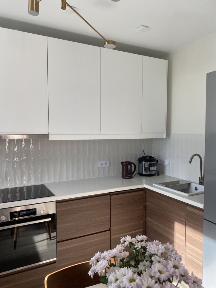 • Кухня укомплектована всей необходимой техникой: посудомоечная и стиральная машина, холодильник, духовка, вытяжка, фильтр для воды обратного осмоса, варочная панель.