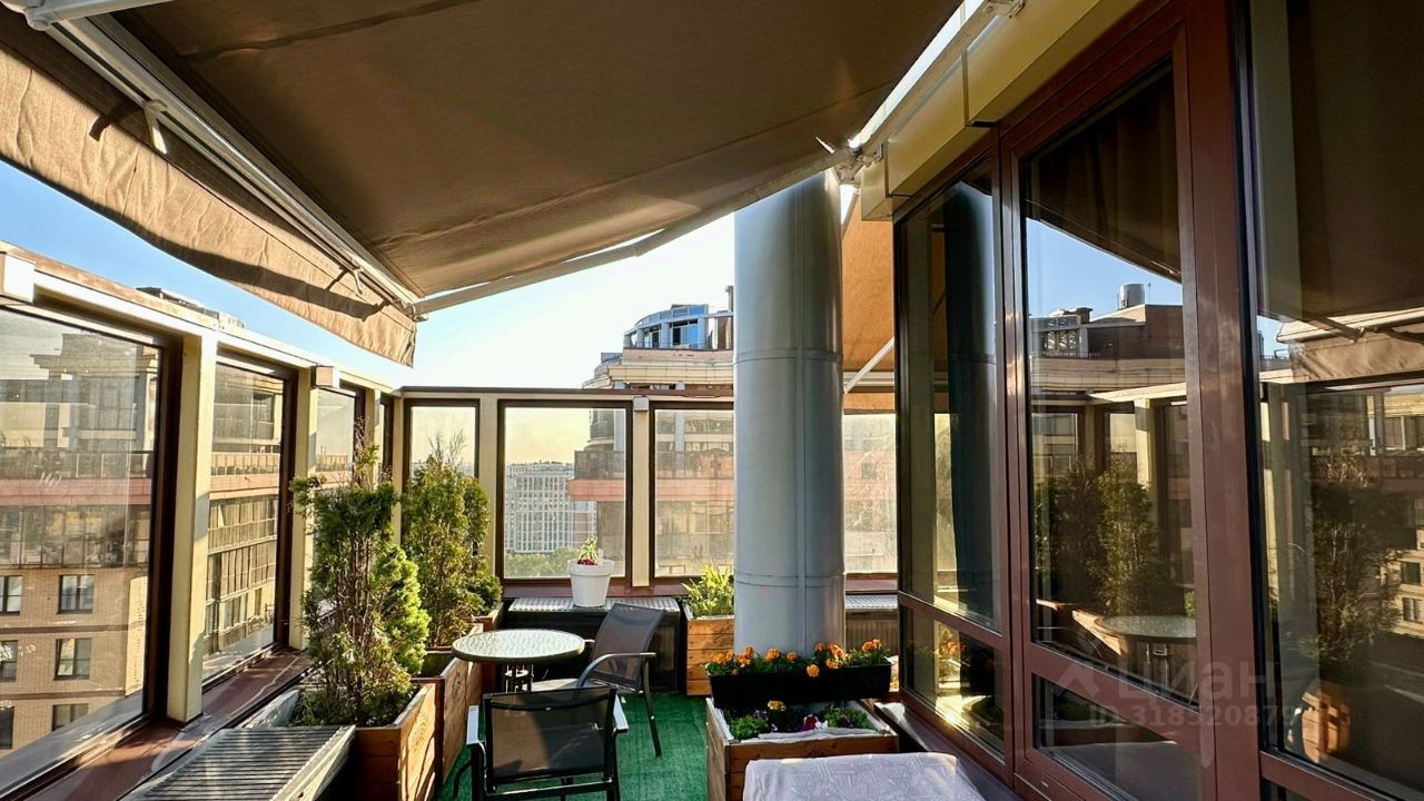 Первая спальня с выходом в остеклённый зимний сад и открытую террасу (40 м²), откуда открываются панорамные виды на город. Здесь можно расслабиться или поработать в тишине.