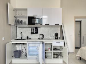 В студии есть все, чтобы Вы чувствовали себя как дома: чистое белоснежное постельное белье, зубные щетки, зубная паста, гель для душа, шампунь, порошок для стирки, ватные диски и палочки, мицелярная вода.