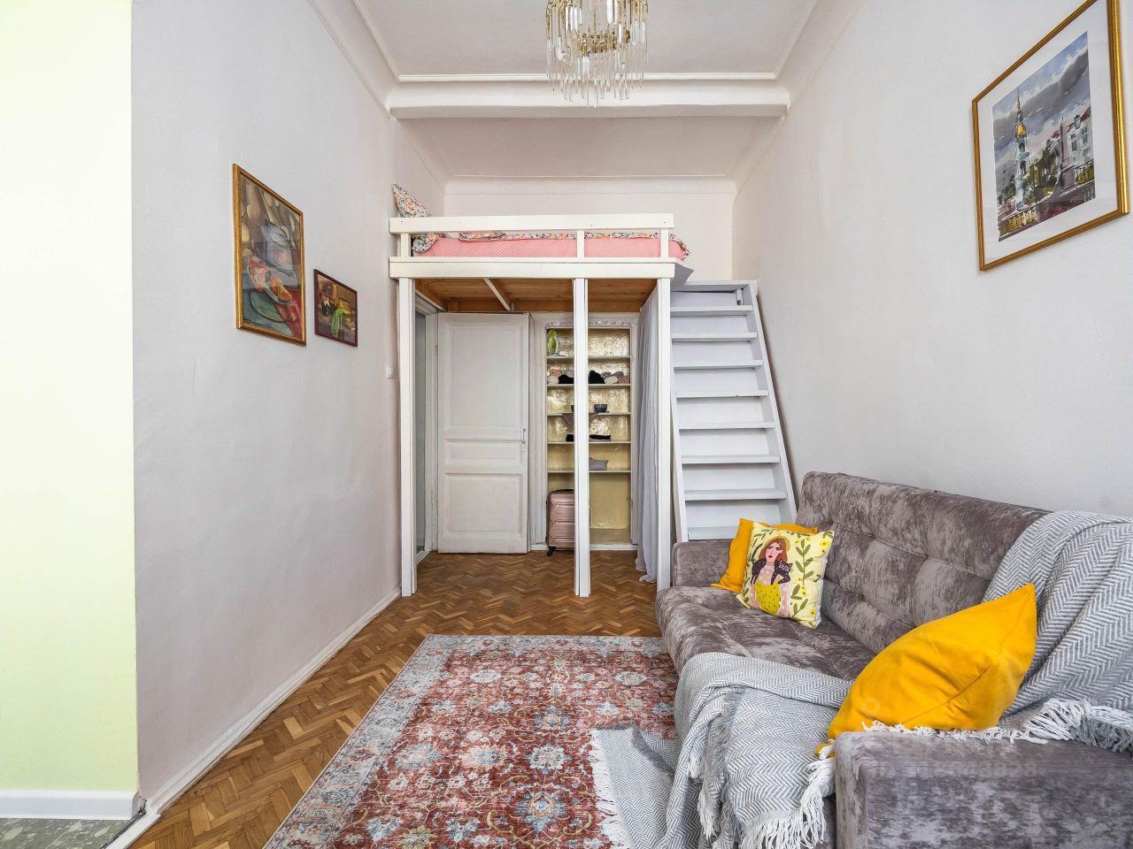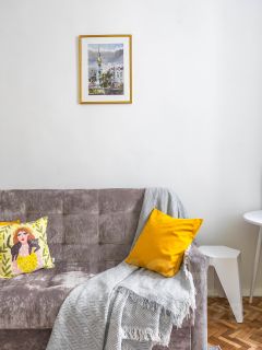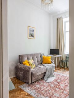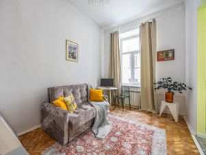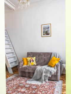 Добро пожаловать в двухуровневую студию Myhome Yourhome на ул. Некрасова, 1/38 (Санкт-Петербург) — исторический центр, яркий, но ненавязчивый интерьер и окна в тихий двор.