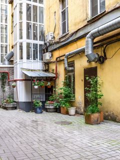 • Двухуровневое пространство, много света, тихий двор.