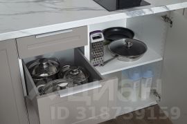 Полностью укомплектованная кухня индукционная плита, посудомоечная машина, чайник/кофеварка, микроволновая печь, холодильник + посуда и столовые приборы, обеденная зона.