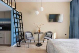 Двухъярусная студия с дизайнерским ремонтом
