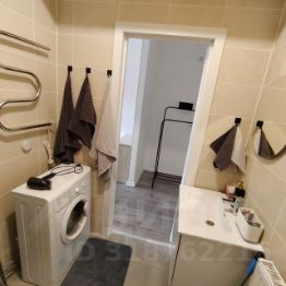 в ванной комнате имеется душевая, зеркало, стиральная машина.