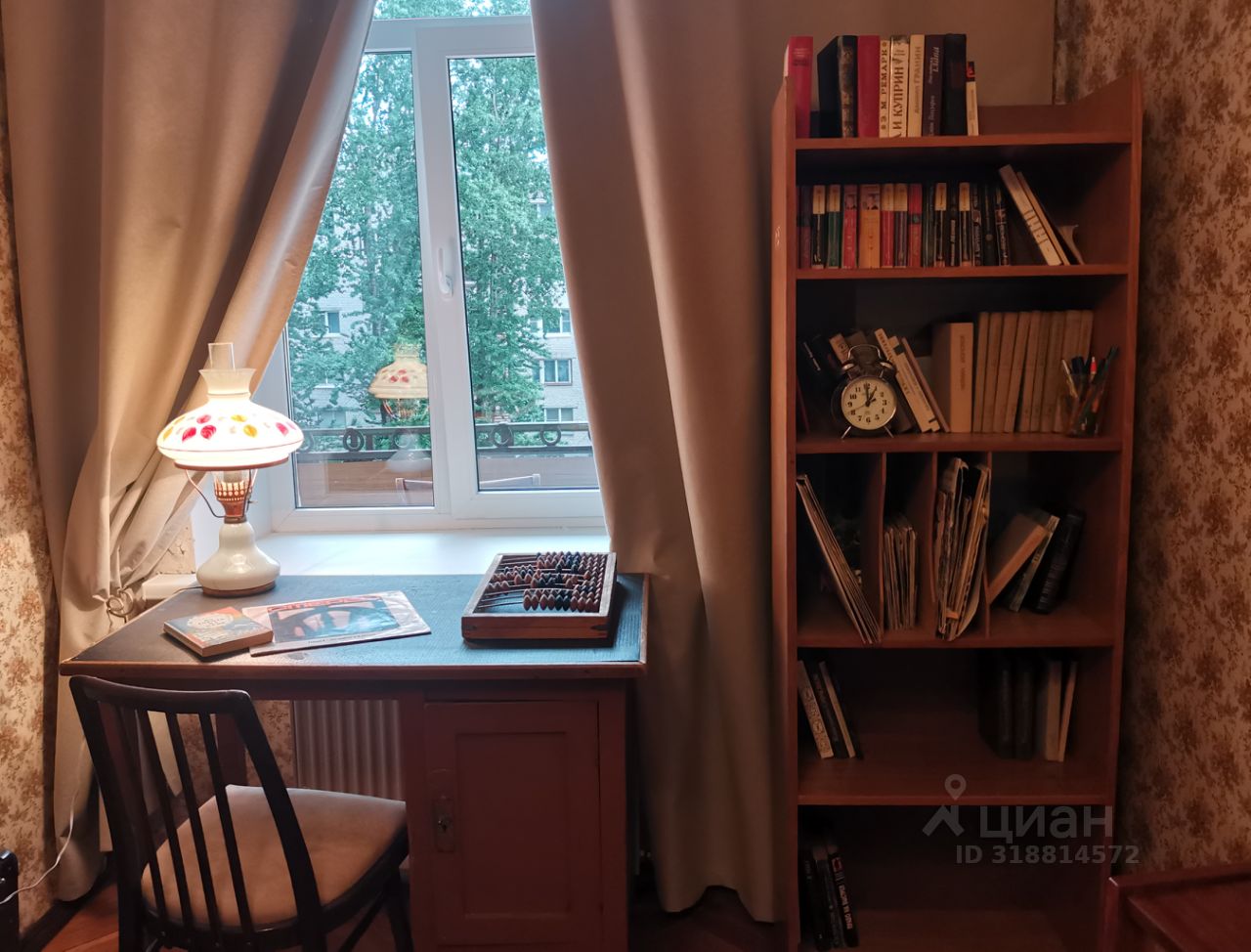 В нашей квартире в ретро-стиле можно увидеть много уникальных элементов интерьера: оригинальные светильники, деревянная лакированная мебель, ковры, вешалка-лосиный рог, радиола, винтажный трильяж, старинные чемоданы и многое другое. На книжных полках стоят книги с классическими произведениями, напечатанными в прошлом веке, виниловые пластинки, творения Ленинградского фарфорового завода.