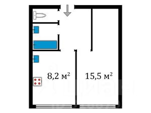 Общая площадь квартиры 30,2 кв.м. (комната 14,8 кв.м., кухня 8 кв.м, раздельный санузл)