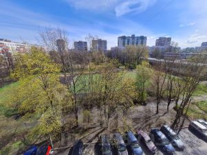 Окна квартиры выходят в тихий двор, зеленый летом.