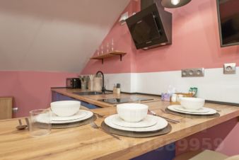 - В кухонной зоне: микроволновая печь, плита, холодильник, чайник, посуда и столовые приборы на любой случай. Чай, кофе, сахар, соль, конфеты.