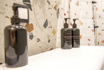 - В ванной комнате: туалет, душ, стиральная машина, фен, утюг, бойлер, набор гигиенических средств, тапочки, полотенца для ног, рук и тела на каждого гостя.