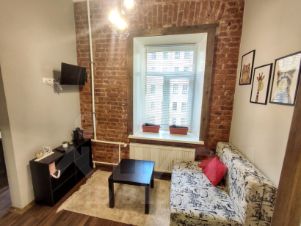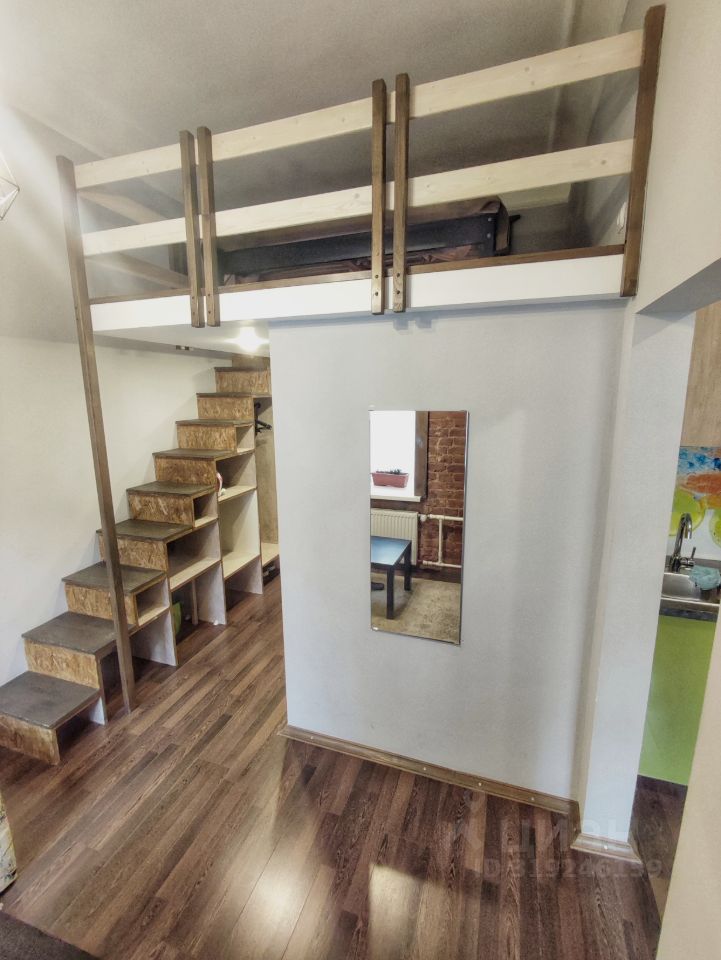 Стиль лофт Северной столицы, высота потолоков 3.5 м. Стены из кирпича царской России. Вид из высоких окон на тихий закрытый двор. На первом ярусе расположены прихожая, совмещённый санузел с тёплым полом, зона отдыха с диваном-кроватью(90х200), ковром, журнальным столиком, стелажом и телевизором, отдельная кухня с двухкомфорочной плитой и вытяжкой, с круглым обеденным столом и двумя стульями, лестница-стеллаж для вещей и доступа на второй ярус. На втором ярусе комфортная спальная зона с двуспальной кроватью(140х200). Все зоны имеют независимую подсветку. Есть всё необходимое для комфортного проживания: холодильник, микроволновая печь, стиральная машина, посуда, кухонные принадлежности, чайник, утюг, фен, сушилка, постельное белье, полотенца, мыло, шампунь, Wi-Fi, телевизор и другое имущество при необходимости.