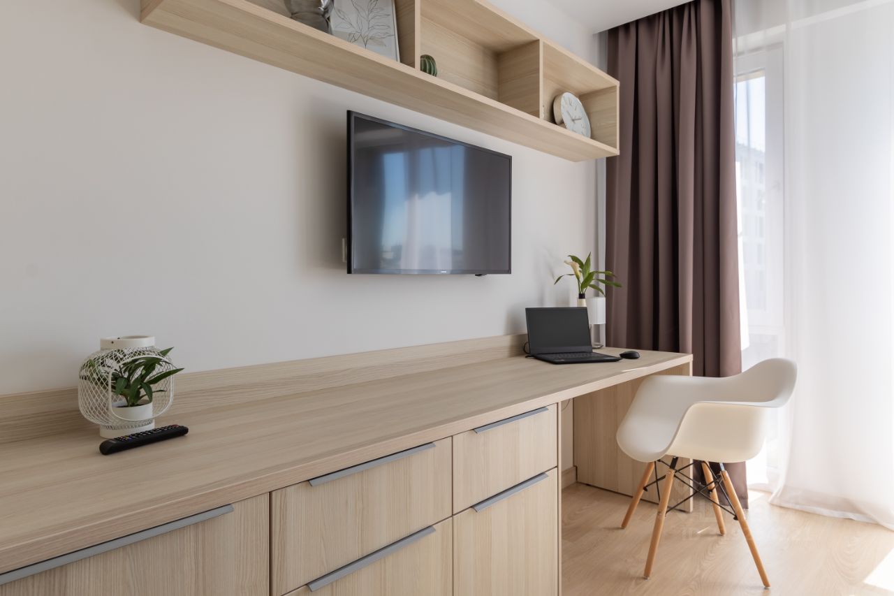 Инфраструктура апарт-отеля: спортзал, подземный паркинг, коворкинг, конференц-зал, фуд-корт, лобби (некоторые услуги оплачиваются отдельно)
