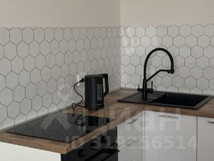 Квартира-студия, новая с новой бытовой техникой и мебелью. В комнате - на полу ламинат, стены обои, совмещенный санузел - плитка на полу и стенах.