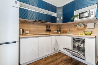 Кухня полностью оборудована: посудомойка, стиральная машина и всё необходимое для приготовления пищи.