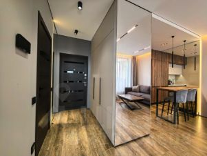 Панорамные окна выходят на солнечную сторону с видом на финский залив. В квартире есть все необходимая техника, предметы быта и обихода. Мебель встроенная или выполнена на заказ. Сантехника скрытого монтажа с термостатами, душевая без порога, умный дом с контролем обогрева, освещения, кондиционер, стиральная машина с сушкой, посудомоечная машина, кофемашина и многие другие прелести комфортной жизни.