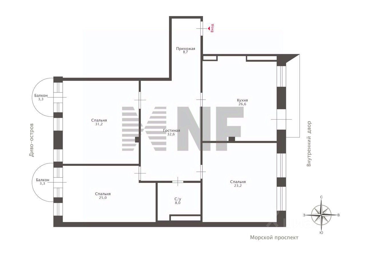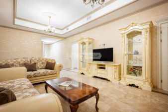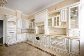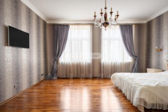 У квартиры удобная и функциональная планировка. Из зоны прихожей вы сразу попадаете в полноценную гостиную, рядом располагается просторная кухня с обеденной зоной. Также в квартире есть три большие спальни, которые можно использовать в качестве кабинета или детских комнат.