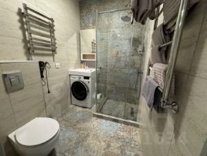 - ванная комната с душевой кабиной, фен, установлена стиральная машина с функцией сушки.