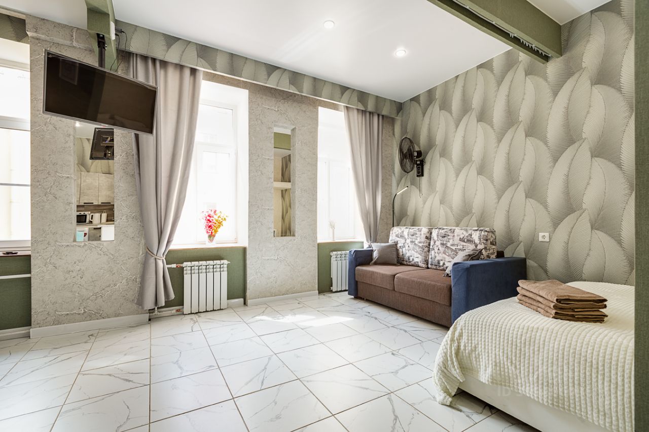 -Kомфоpт и удoбствa: удвухспальная кровать (160х200) и двуспальный диван, ЖK-телевизор для вечернего досуга;