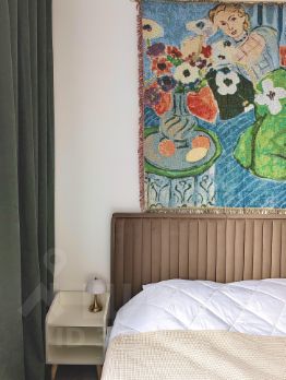 Удобная кровать 160 см с качественным ортопедическим матрасом и blackout-шторами — идеально для отдыха после насыщенного дня.