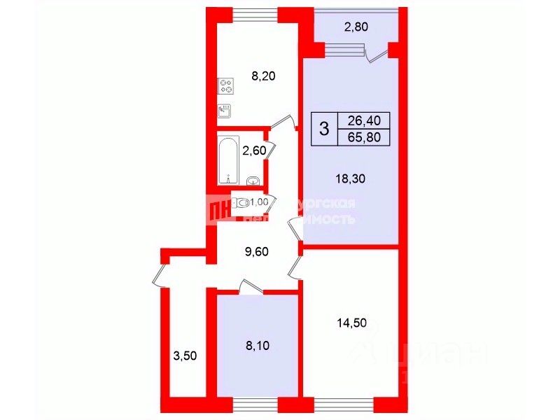 Сдаются в аренду только 2 комнаты (8,1+18,3) в 3ккв, комната 14,5 кв.м закрыта на ключ.