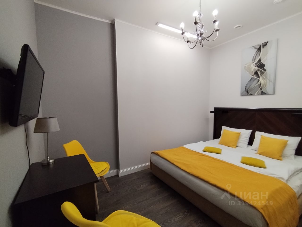 Просторная комната без окна, оформленная в теплых тонах с двуспальной кроватью и собственной ванной комнатой. Предоставляется все необходимое для комфортного проживания. Гости пользуются кухонной зоной, стиральной машиной, гладильными принадлежностями, расположенными в общей зоне.