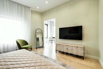 Предлагаемая квартира расположена на последнем этаже первой береговой линии. Изо всех окон захватывающие виды на Елагин остров и водные просторы Средней Невки. В квартире закончено дизайнерское оформление и она готова к сдаче. Планировка и интерьер квартиры это баланс эстетики и функциональности : приватная зона с двумя спальнями и двумя ванными комнатами и общее пространство с гостиной, кухней, лаундж зоной и гостевым санузлом. В квартире имеется просторная постирочная и гардеробная. Есть место в подземном паркинге. Квартира сдается на длительный срок.