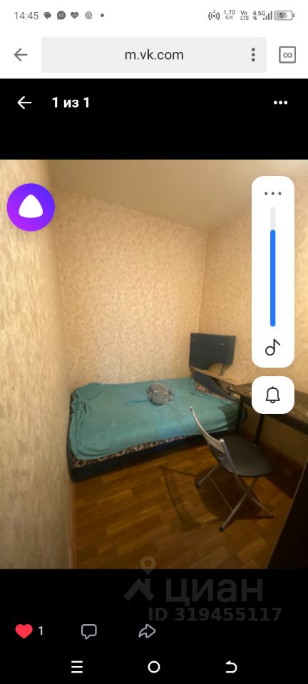 В квартире есть косметический ремонт, что позволяет вам сразу заселиться и начать жить. В комнате находится необходимая мебель, которая включает в себя удобный диван, шкаф и стол. Кухня оборудована всей необходимой техникой: плита, холодильник и микроволновая печь. Санузел совмещённый и чистый, в нём есть всё необходимое для комфортного проживания. Окна выходят на улицу, поэтому в квартире всегда светло.