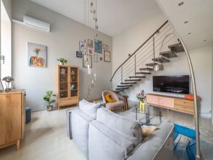 Квартира 2х уровневая. На первом этаже кухня, гостиная, ванная комната + санузел. На втором этаже гардероб, рабочая зона, санузел и полноценная 2х спальная кровать с ортопедическим матрасом. 1 этаже диван раскаладывается+ есть ортопедический топер для более комфортного расположения.