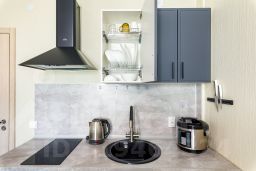 Техника:ЖК-телевизор (Smart TV), Wi-Fi, холодильник, варочная панель, микроволновка, стиральная машина, чайник.