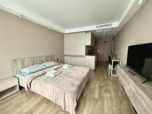 Апартаменты с новым дизайнерским ремонтом! Оборудованы всем необходимым для комфортного проживания: удобная двуспальная кровать с ортопедическим матрасом, свежее постельное белье отельного качества, полотенца, телевизор, варочная панель, холодильник, микроволновая печь, электрочайник, фен, утюг, посуда, столовые принадлежности, сушилка для белья, гладильная доска, WI-FI, ТВ.