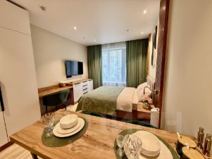 ВАЖНАЯ ИНФОРМАЦИЯ ! При бронировании, помимо комиссии, взимаемой сайтом, необходимо внести предоплату за первые сутки. Для внесения этой оплаты, пожалуйста, свяжитесь с менеджером. Стильная квартира в новом ЖК Санкт-Петербург Добро пожаловать в современные апартаменты с дизайнерским ремонтом . Идеальное расположение: * 5 минут пешком до м. Ладожская и Ладожского вокзала; * 10 минут на такси до Невского пр. * В пешей доступности — ТРК Заневский каскад, рестораны, кофейни, супермаркеты, аптеки и всё необходимое. В апартаментах есть всё для комфортного проживания: * Двуспальная кровать * Рабочая зона ,Wi-Fi; * Телевизор, кухня с электроплитой, чайником, микроволновкой и холодильником; * Вся необходимая посуда * Стиральная машина, утюг, фен Важная информация: * Заезд с 14:00, выезд до 12:00 (возможен ранний заезд/поздний выезд — по договорённости); * Бесконтактное заселение 24/7; * Уборка не включена в стоимость; * Гарантийный депозит — 5000₽ (возвращается в день выезда ); * Отчётные документы ; * Курение запрещено (штраф 10000₽); * Вечеринки и мероприятия — запрещены ( штраф 10000₽) Дорогие гости! Сообщаем вам, что заселение в наши апартаменты осуществляется бесконтактным способом. Перед приездом обязательно свяжитесь с менеджером и предоставьте ваши паспортные данные для составления договора. После оплаты вам будет предоставлен код доступа к апартаментам. Уборка в размере 1500₽ Желаем приятного отдыха