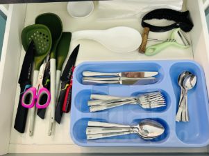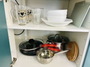 Индукционная плита, чайник, холодильник, вся необходимая посуда и столовые приборы. Есть фильтр для воды. Всегда есть масло, соль, чай, сахар.