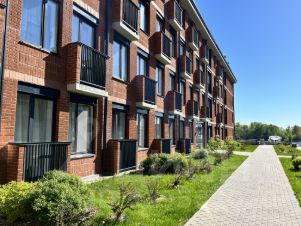 Квартира-студия для двоих гостей на первом этаже с французским балкончиком в новом кирпичном доме комфорт-класса на берегу Финского залива в Кронштадте.