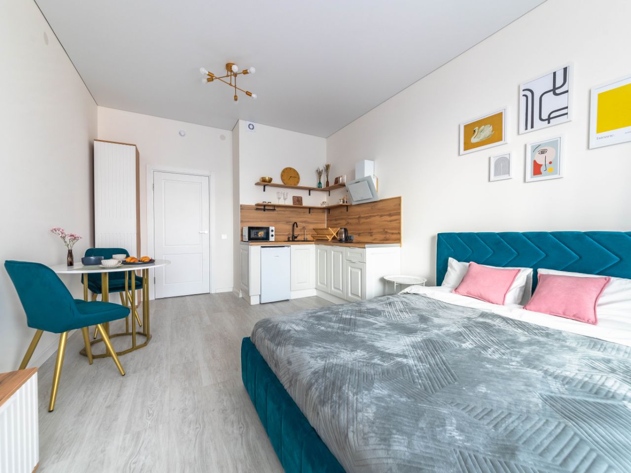 Студия полностью оборудована новой техникой и мебелью в современном стиле, а оснащение комплекса обеспечивает спокойное проживание:
