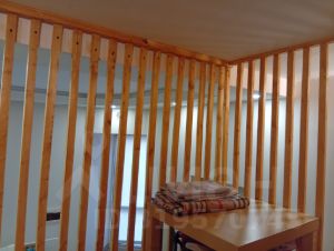 Двуспальный матрас на втором этаже + дополнительно раскладушка+ раскладной диван внизу.