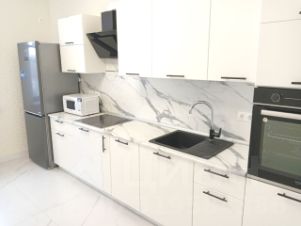 Квартира полностью оборудована встроенной мебелью, техникой (стиральная машина, микроволновка, холодильник, посудомоечная машина, ТВ), вся техника и мебель новая "ВЪЕЗЖАЙ И ЖИВИ".
