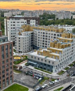 Двор без машин. Для автовладельцев предусмотрен подземный паркинг и отдельная парковочная зона за шлагбаумом.