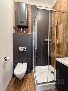 Санузел совмещенный с душевой кабиной. Бойлер на 70 литров всегда обеспечит теплой водой.