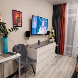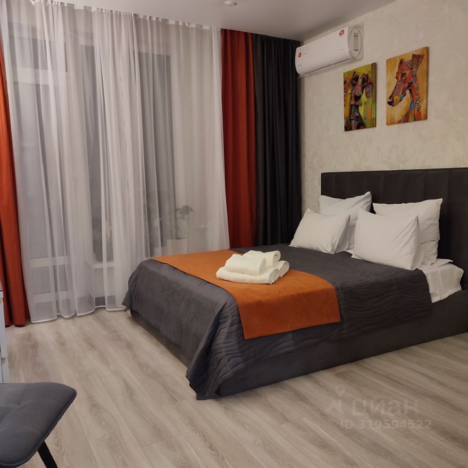 Современная квартира-студия с панорамными окнами в новом ЖК Балканы. Большие окна открывают захватывающий вид на город, а хороший ремонт и продуманный интерьер создают уют для вашего отдыха.