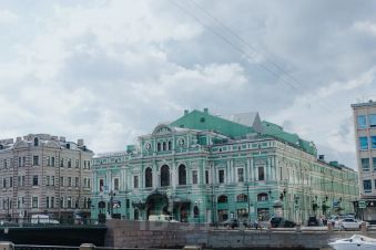 Квартира находится в закрытом дворе, который выходит прямо на реку Фонтанку. Через мост - театр БДТ.