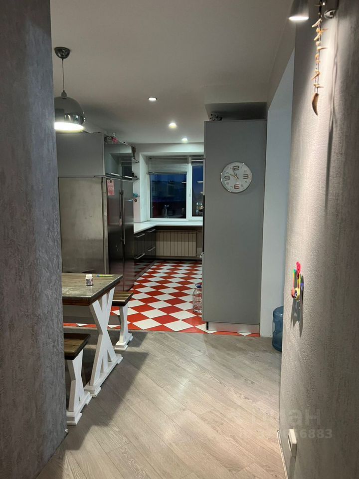 Огромная проходная гостиная с ТВ и диваном (не раскладной), в спальне двуспальная кровать 200*200, шкафы. Есть детская кровать с регулировкой длины.