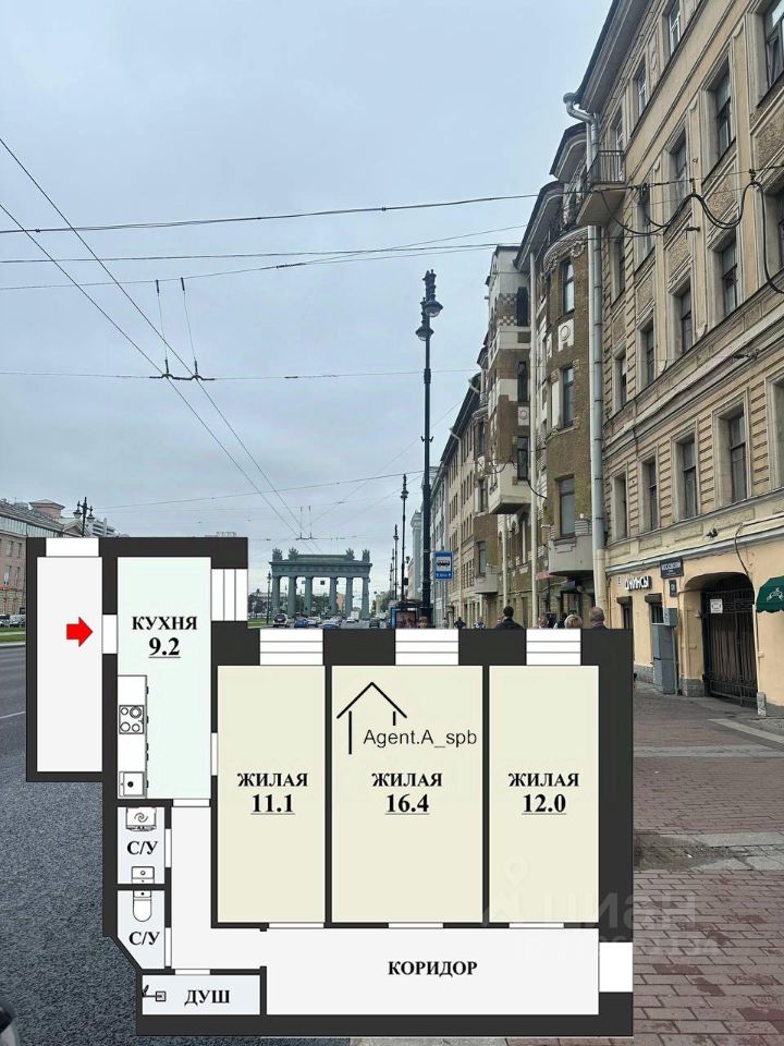 Сдается в аренду трехкомнатная квартира в 5 минутах пешей ходьбы от метро Московские ворота