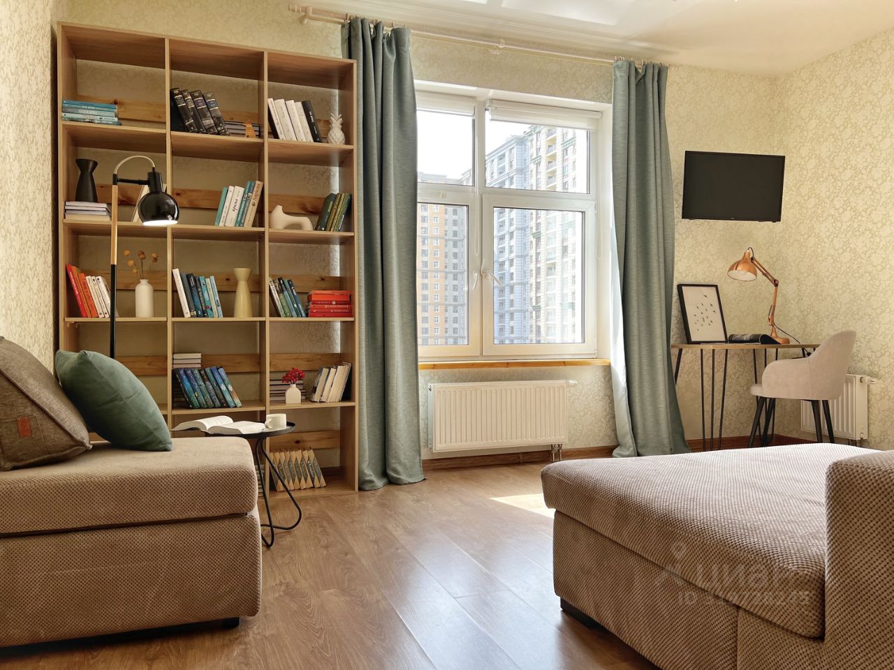Для комфортного сна: большая кровать 180х200 см с ортопедическим матрасом аскона. Раскладной диван 160х200 см для 2-х гостей.