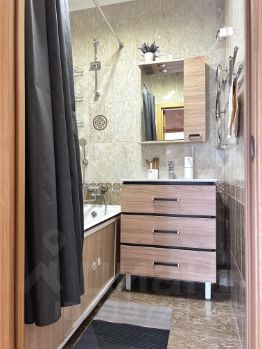 В ванной комнате: ванна, косметические и гигиенические принадлежности, фен. На случай отключения воды установлен бойлер.