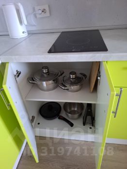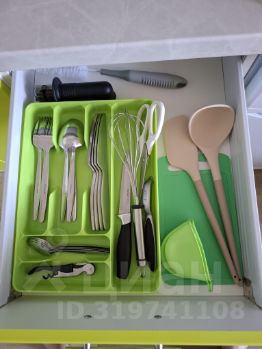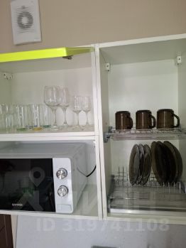 Кухня-гостиная: обеденный стол со стульями, функциональный кухонный гарнитур, варочная панель, холодильник, СВЧ-печь, электрочайник, тостер, вся необходимая посуда. В доступе питьевая вода: установлен фильтр "Аквафор".