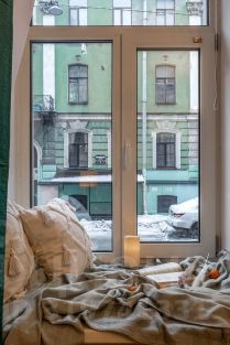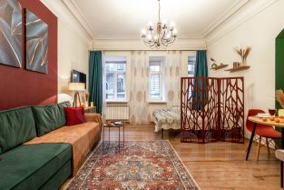 Квартира: укомплектована всем необходимым для вашего комфортного пребывания, а также: Wi-Fi, ТВ, двуспальная кровать (ширина 140), раскладной диван (ширина 140), утюг, гладильная доска. Хорошая звукоизоляция, высокие потолки.